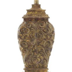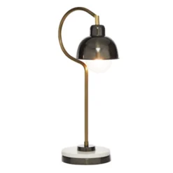 - Gold accent table lamp crafted of robust and long-lasting glass, polyester, iron, and plastic materials