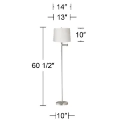 - Brushed nickel finish metal accents. Tapered white fabric drum shades. 8-foot long cords.