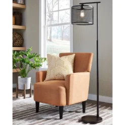 The Adesso Benson Floor Lamp – Black will brighten up industrial style in the home. Black tripod legs serve as the base for this design-oriented floor lamp. A brushed bronze metallic band seemingly holds the tripod together, while an ivory linen drum lampshade is the crowning glory on top. Play up modern industrial chic by placing the lamp against a bare bones brick wall, or add some structure when it’s next to an overstuffed sofa. It’s time for light.