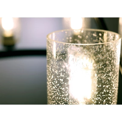 A revised classic design with statement-making elements. The Hartland round chandelier’s showcase feature is the clear seeded glass shades. Relish the way the glass catches the light and sparkles in a beautiful effect with this 8-light chandelier. The textured glass and strong lines in this round chandelier make for a perfect finishing touch in your space.