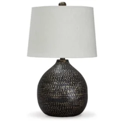 This table lamp is the perfect combination of form and function, bringing lighting and chic style to any interior. The curvaceous lamp is crafted of amber glass for modern flair and topped with a natural jute fabric shade. It’s the perfect way to spice up your existing decor, all while providing warm ambient lighting to set the mood. Brighter, well-lit spaces always tend to look larger, smarter and so much more visually appealing. With our wide variety of table lamp shapes, sizes and styles, we’d say your future is definitely looking bright. The trusted source for stylish furniture, lighting, rugs, accessories and mattresses for every taste and budget, our wide assortment brings your space to life with furniture and decor that show off your style personality.