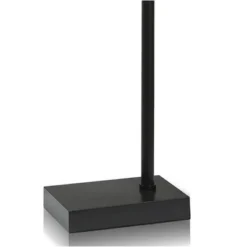 - The body of the lamp is composed of metal. The metal has a black finish.