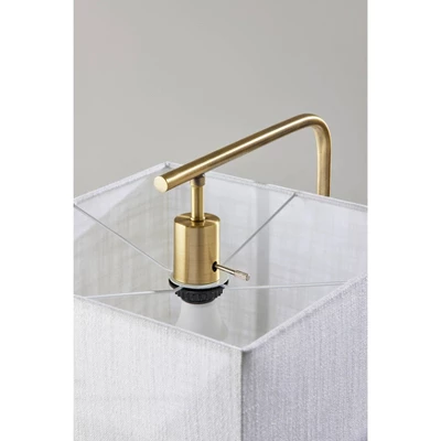 With a clean, minimal design and a simple color palette, the 60″ Flora floor lamp exudes modern style. It features a black metal rectangular base measuring 11″ by 8.5″. The black finish continues up the stem before transitioning to an antique brass finish leading to the square, off-white textured fabric shade that softly distills the light. The 100W bulb (not included) is operated by a 3-way rotary switch located on the socket, allowing you to easily adjust the lighting level between low, medium, high, and off when using a 3-way bulb. When using a regular bulb, the rotary switch turns the lamp on or off. The Flora floor lamp is also available with a black and brushed steel finish and light taupe textured fabric shade.