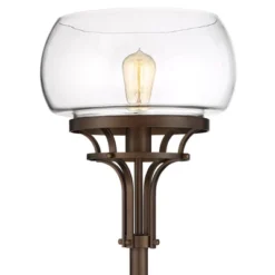 - Amber art glass shades. Iron-look frame in a golden bronze finish with silver finish highlights. Metal construction frame and canopy.