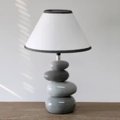Illuminate your living space with this simple yet stylish glass table lamp. The smoke gray glass raindrop shaped base and white fabric drum shade is the perfect blend of charm to give your home a contemporary and modern upgrade. Perfect for living rooms, bedrooms, kids and teens, college dorms, apartments, nurseries, or offices.