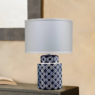 The intricate quatrefoil design of this table lamp brings sophistication to any room. Made of ceramic and hand-painted in blue and white for an artisanal look. Topped a crisp linen shade for a soft contrast and refined glow. Place it on the side table next to your sofa or console in your living room for a chic global accent.