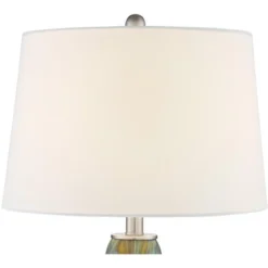 360 Lighting Azure Modern Table Lamps 29 1/2″ Tall Set Of 2 Blue Brown Art Glass White Fabric Drum Shade For Bedroom Living Room Bedside Nightstand