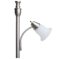 1 Light Torchiere Floor Lamp With Marbleized Glass Shade Brushed Nickel – Elegant Designs