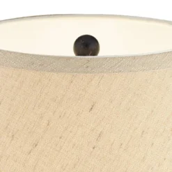 Decorate a room with these two matching table lamps. The set has been inspired by traditional designs, and features handsome wood-tone finish bases with scroll detailing and decorative openwork leaf accents. Bronze finish accents and a creme white shade completes the handsome look.