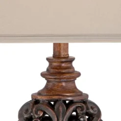 - French candlestick-style base in an antiqued beige wash finish. Cast resin construction.