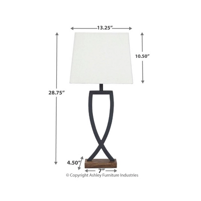 This table lamp is an enticing merge of mixed materials. Textured black finished metal stands poised atop a block of warm brown wood. Open design is right at home among casual decor. It is the perfect way to spice up your room, all while providing warm ambient lighting to set the mood. Brighter, well-lit spaces always tend to look larger, smarter and so much more visually appealing. With our wide variety of table lamp shapes, sizes and styles, we’d say your future is definitely looking bright. And we go the extra mile to package, protect and deliver your purchase in a timely manner. Trust us to bring your space to life with furniture and decor that show off your style and personality.