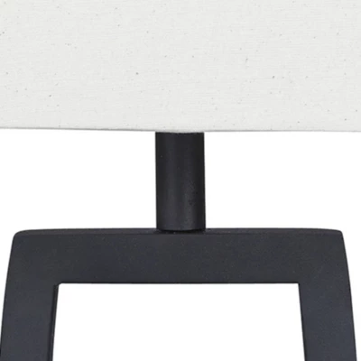 - Made of textured black finished metal and wood with rectangular hardback shade