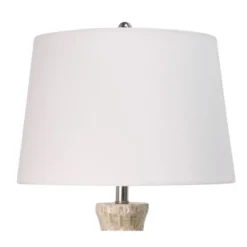 The Thame table lamp is a contemporary fixture with bold features, including a steel base, a blue molded frame, and a white rectangular shade. The intriguing shape of the blue frame is enhanced by its textured horizontal lines. With its silver finial and three-way functionality, this blue and white lamp works well on a side table in a living room or family room. This piece exemplifies superior product design and great styling. It will pair well with contemporary styling. Suitable for residential use in a dry location. Due to lighting and monitor differences, actual colors and finishes may vary slightly from what appears online.