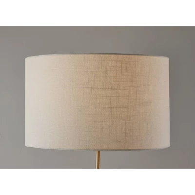 The adjustable height Winthrop floor lamp merges function and mid-century style for the perfect lighting solution for any space. The antique bronze body with brass accents features clean lines rising from a rectangular base. The 1″ diameter tube leads to a narrower brass tube that is adjustable, allowing you to vary the lamp height between 53″ and 63″ to suit your lighting needs. The lamp is topped with a short drum shade in a cream cotton and linen textured blend to softly distill the light from a 100W bulb. Easily turned on and off by a rotary socket switch, the floor lamp is powered by a 5′ gold fabric-covered cord. Complete your dΓ©cor with the coordinating Winthrop table lamp.